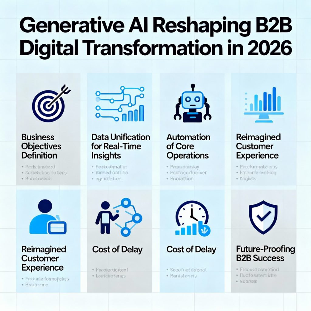 In today’s hyper-competitive B2B landscape, digital transformation is no longer optional, it is critical for survival. Enterprises are grappling with complex supply chains, fragmented customer experiences, and an overwhelming influx of data. Forward-looking enterprises realize that Generative AI is now central to survival and innovation, not simply a technology upgrade.