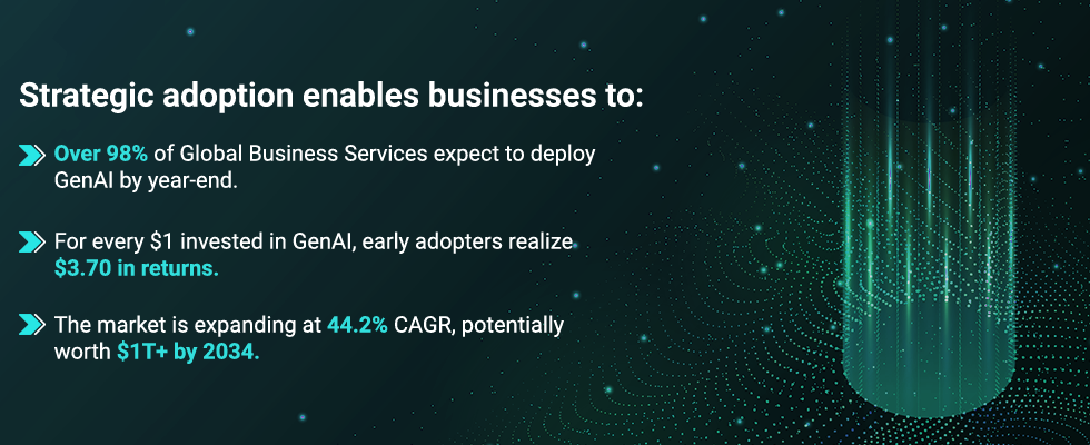 Forward-looking companies are already leveraging Generative AI to unlock smarter decisions, enhanced efficiency, and more personalized customer experiences.
